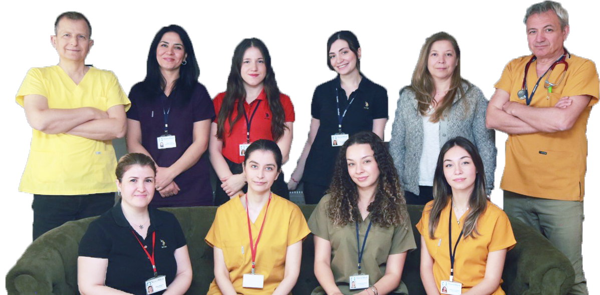 Hastalarımızın randevu organizasyonları, iç iletişim süreçleri ve hasta ilişkilerinde önemli bir rol oynayan güler yüzlü destek ekibimiz; Aysun Ökten, Ebru Özer Koca, Merve Tamaş, Belgin İlter ve Gizem Gören her zaman yanınızda ve size yardımcı olmaktan mutluluk duymaktadır.